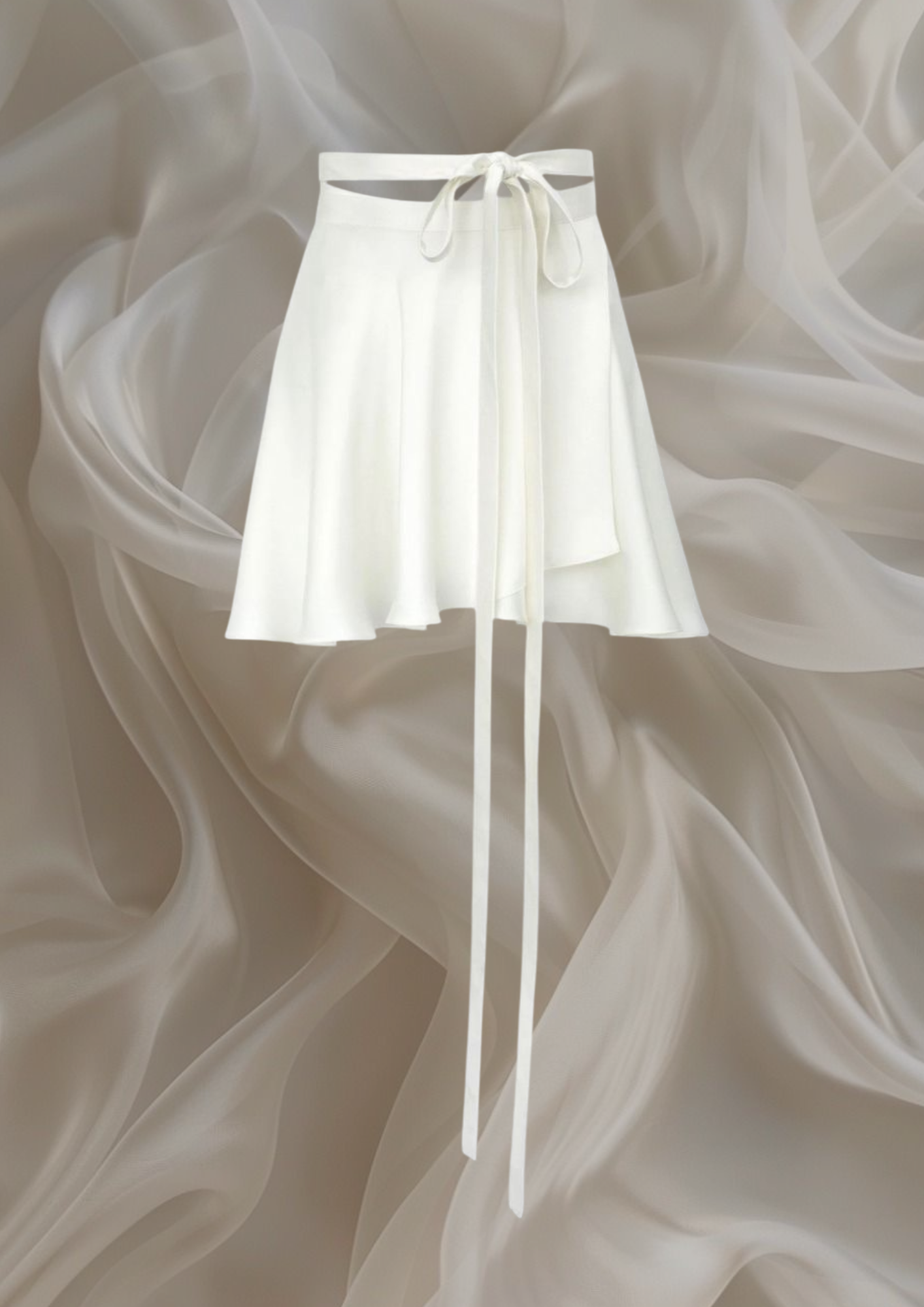 Salida de falda corta en delicada seda italiana, tono blanco perla, corte en talla única.